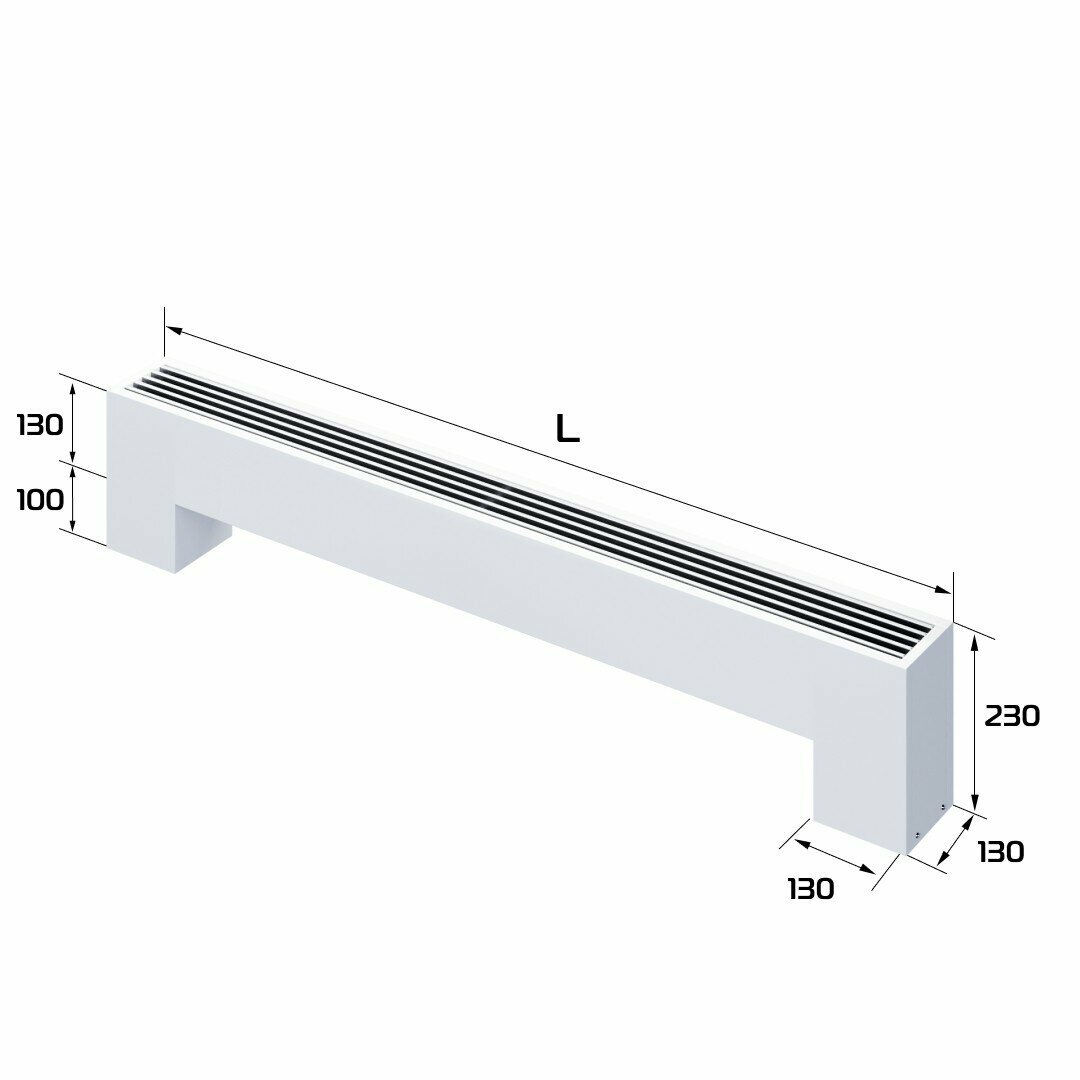 Напольный конвектор Techno Vita KPZ 135-130-0800, нижнее подключение под термостат, с решеткой перфорированной РП 135-0800, цвет белый