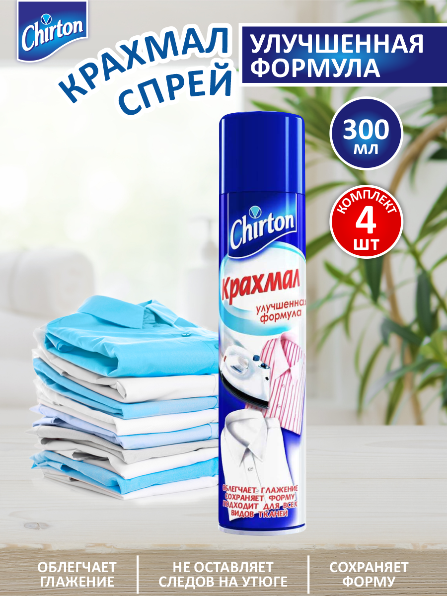Отзывы на Крахмал для белья CHIRTON, спрей для одежды, для глажки, 300 мл, 4 шт.
