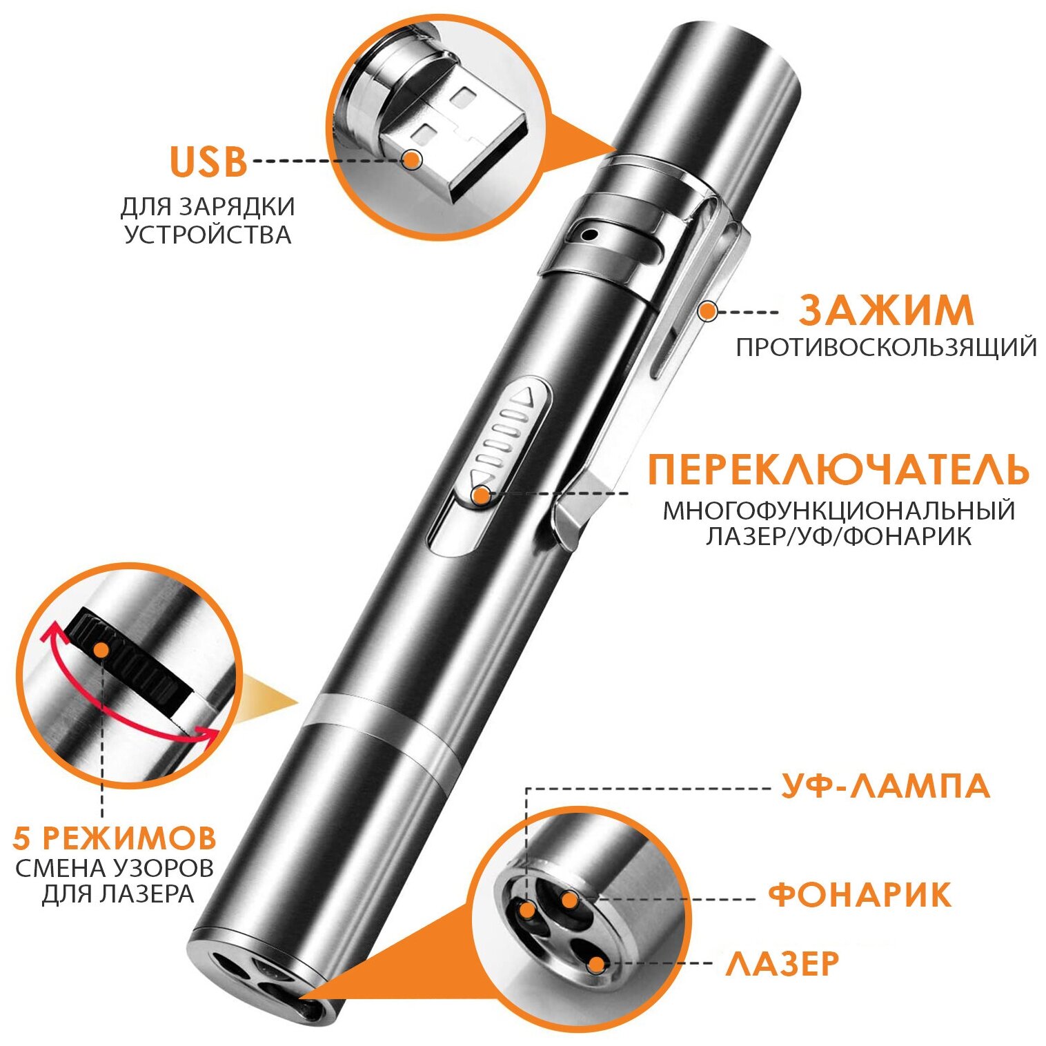 10 цен на Лазерная указка SimpleShop 7 в 1 для кошек и собак, Лазер, УФ, Фонарик, с USB зарядкой.