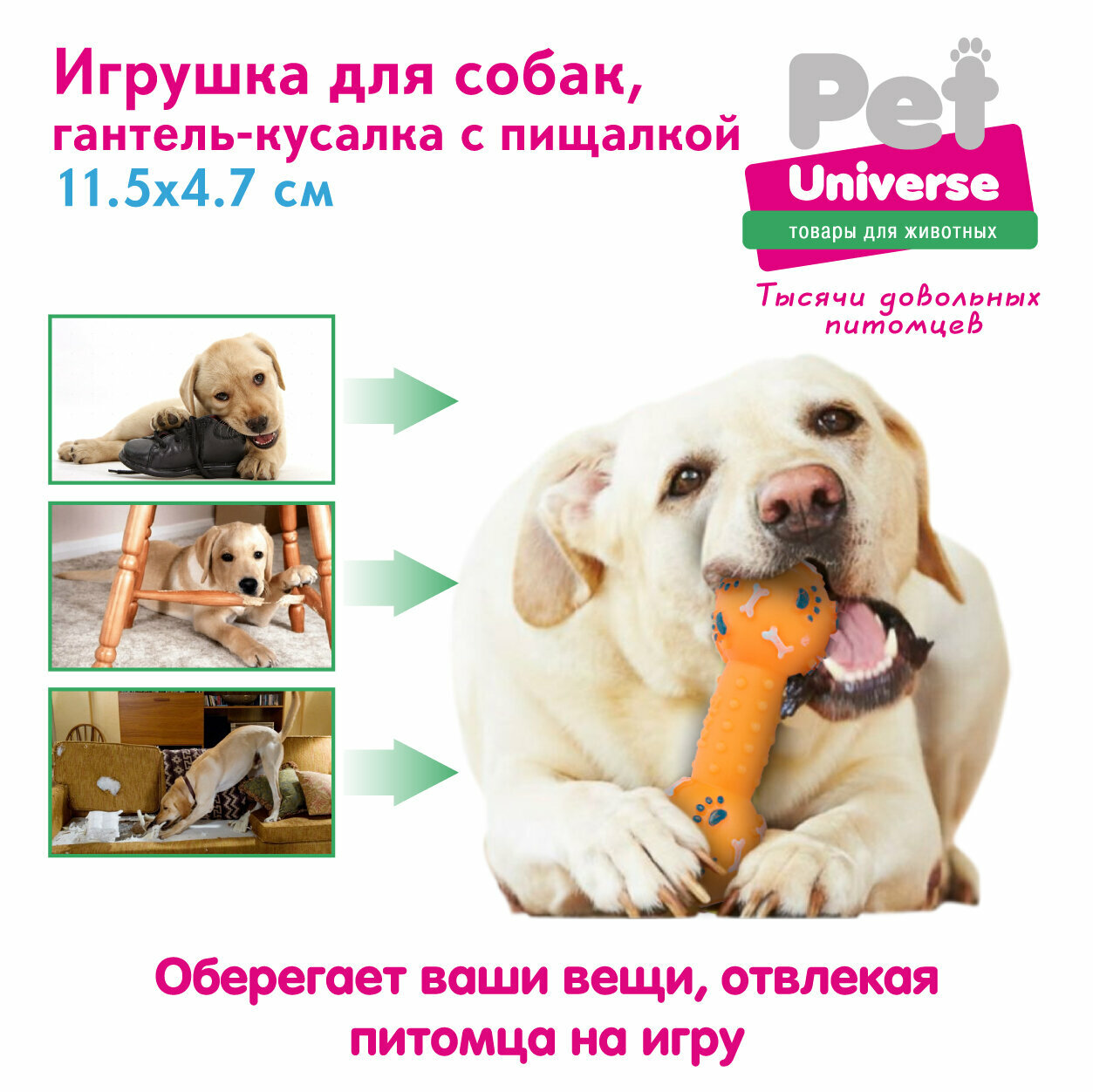 10 цен на Игрушка для собак с пищалкой Pet Universe Гантель с шипами 12*5 см, для щенков и взрослых собак /PU3018OE