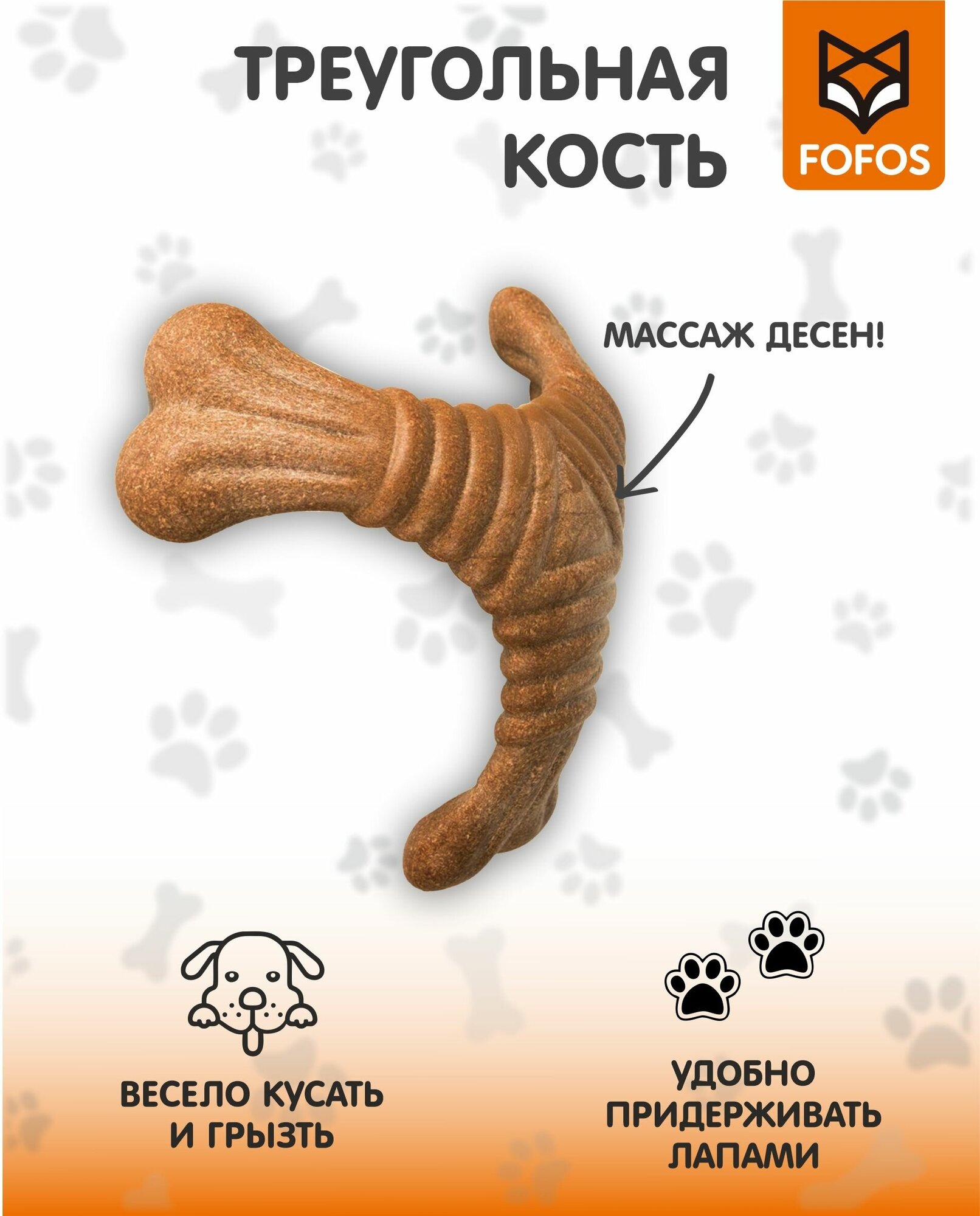 Кость для собак и щенков всех пород, развивающая жевательная игрушка для чистки зубов и массажа десен у собак "Деревянная жевалка-кусалка треугольная косточка" 15 см / FOFOS информация: