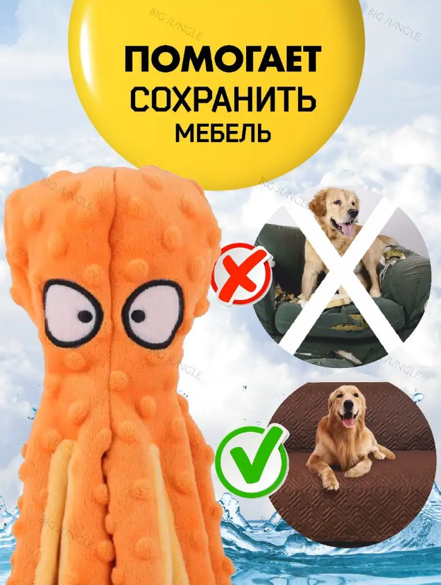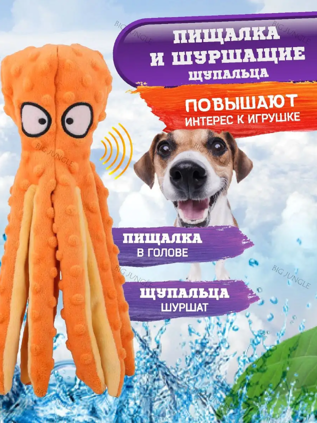 Отзывы на Мягкие игрушки для собак шуршащие, осьминог фиолетовый и оранжевый