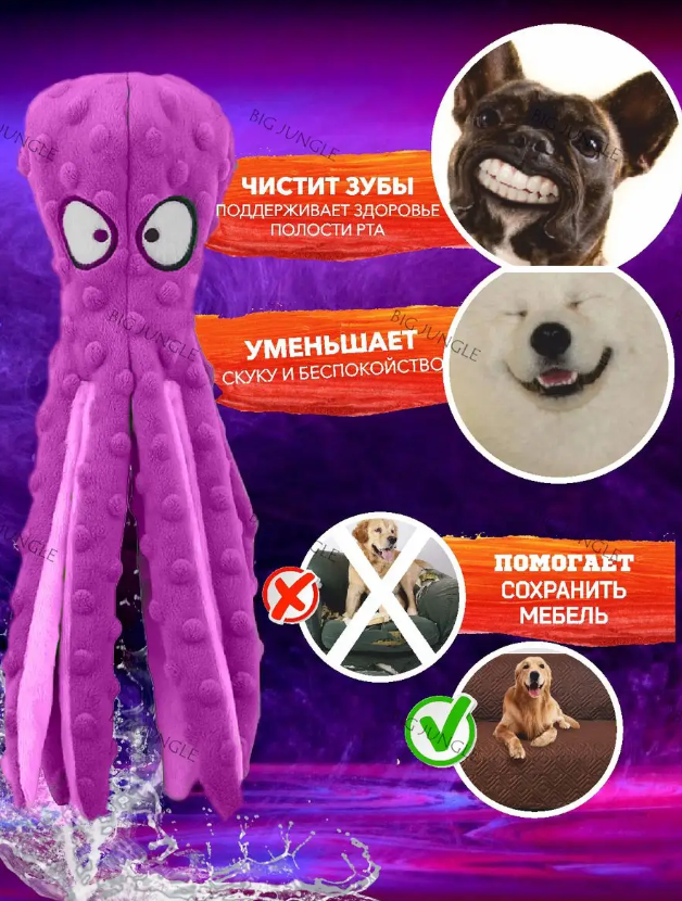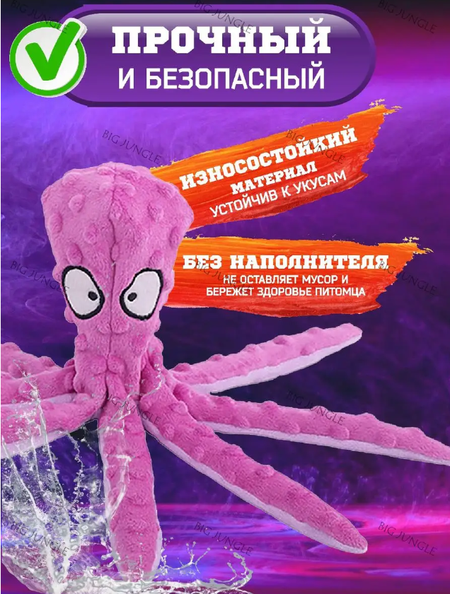 10 цен на Мягкие игрушки для собак шуршащие, осьминог фиолетовый