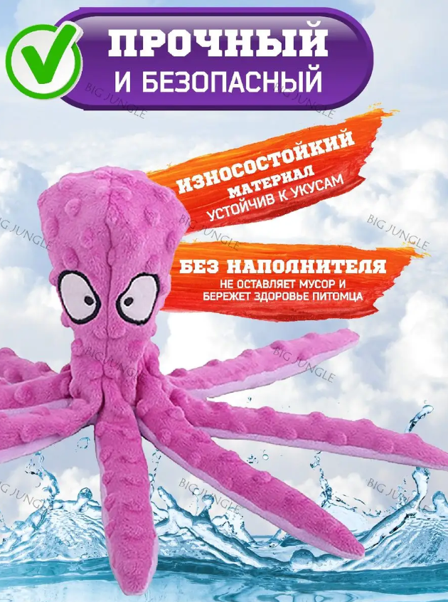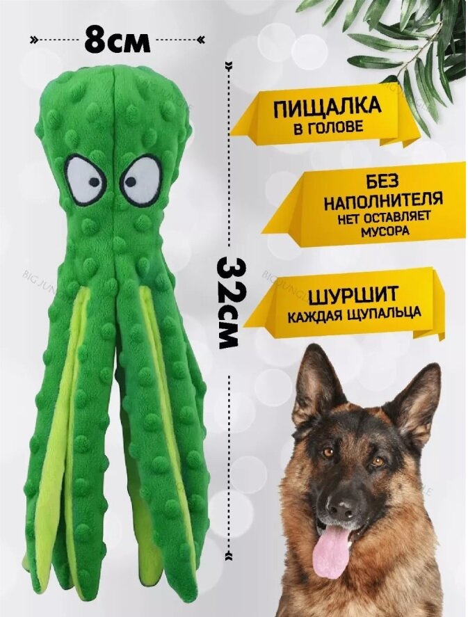 Отзывы на Мягкие игрушки для собак шуршащие, осьминог зеленый и фиолетовый