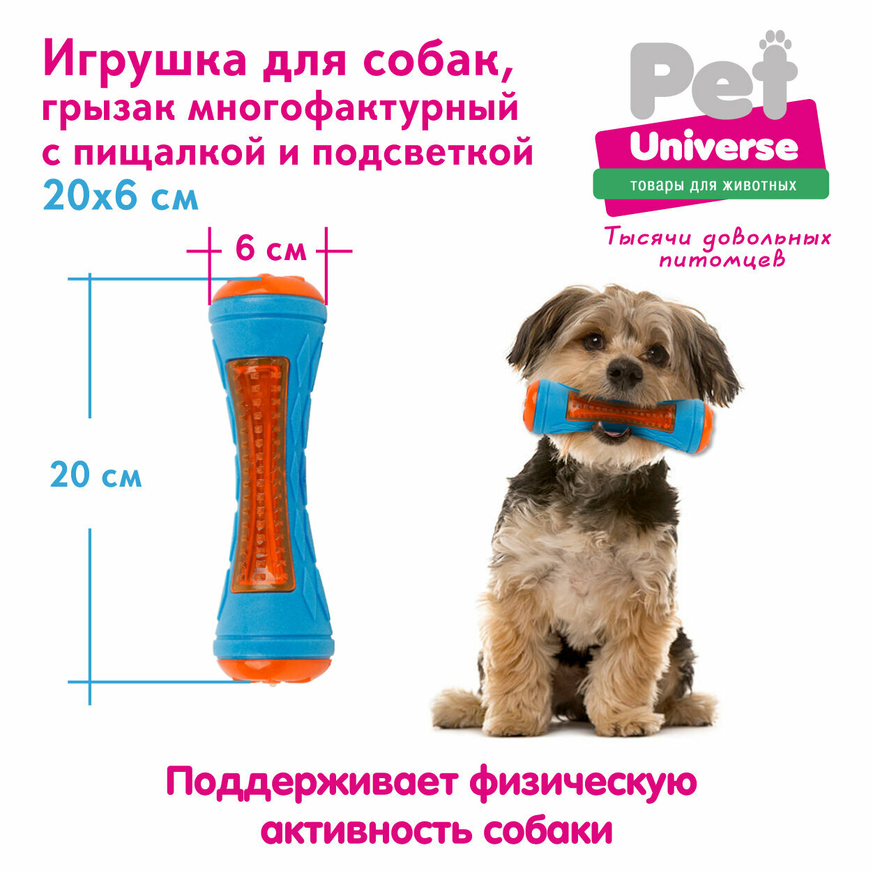 Игрушка для собак Pet Universe Грызак многофактурный прочный светящийся палка жевательная 20х6 см, 138 гр. ТПР, PU3068 информация: