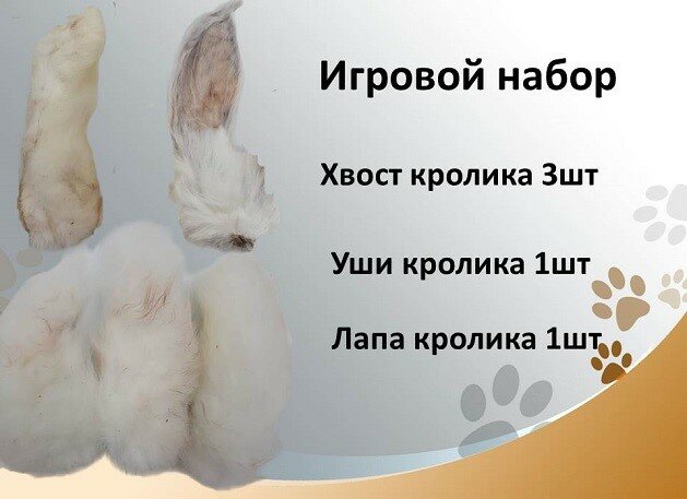 Игровой набор №5: кроличьи уши, хвост и лапа Съедобные натуральные игрушки для мелких, средних пород собак и кошек информация: