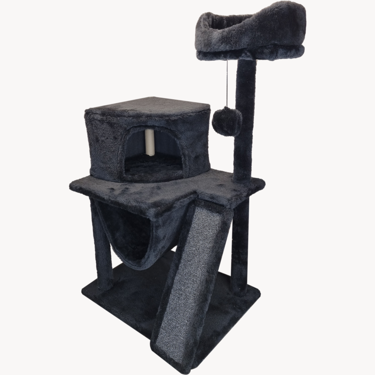 Домик для кошки с когтеточкой и гамаком "Альфа", Игровой комплекс для кошек. 60*45*120см, цвет: Черный. информация: