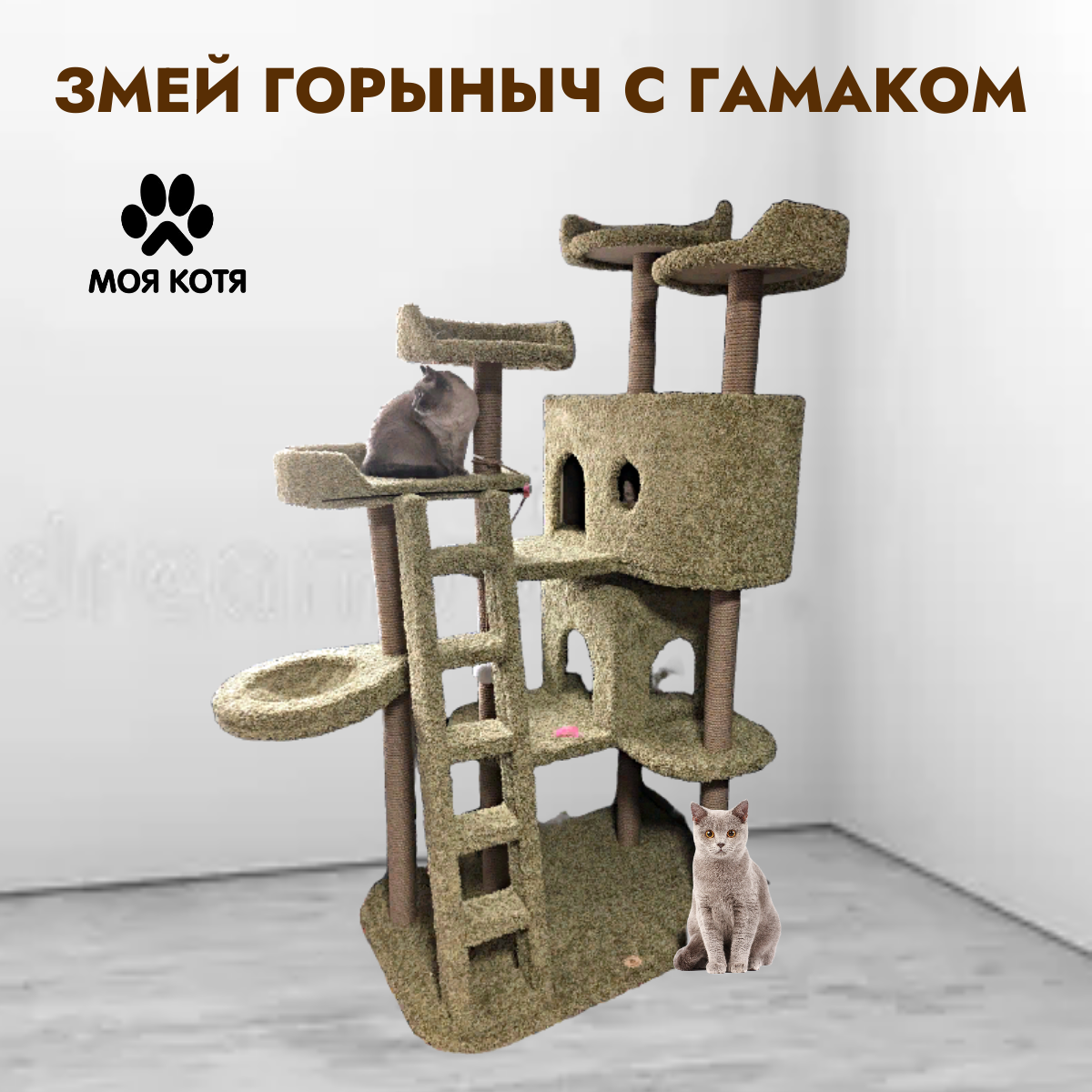 Отзывы на Игровой комплекс для нескольких кошек Моя Котя "Змей Горыныч" с гамаком, цвет оливковый