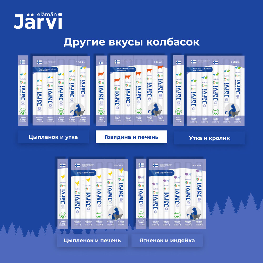 Jarvi мясные колбаски для котят и кошек с говядиной и печенью 5 упаковки по 1 шт. информация: