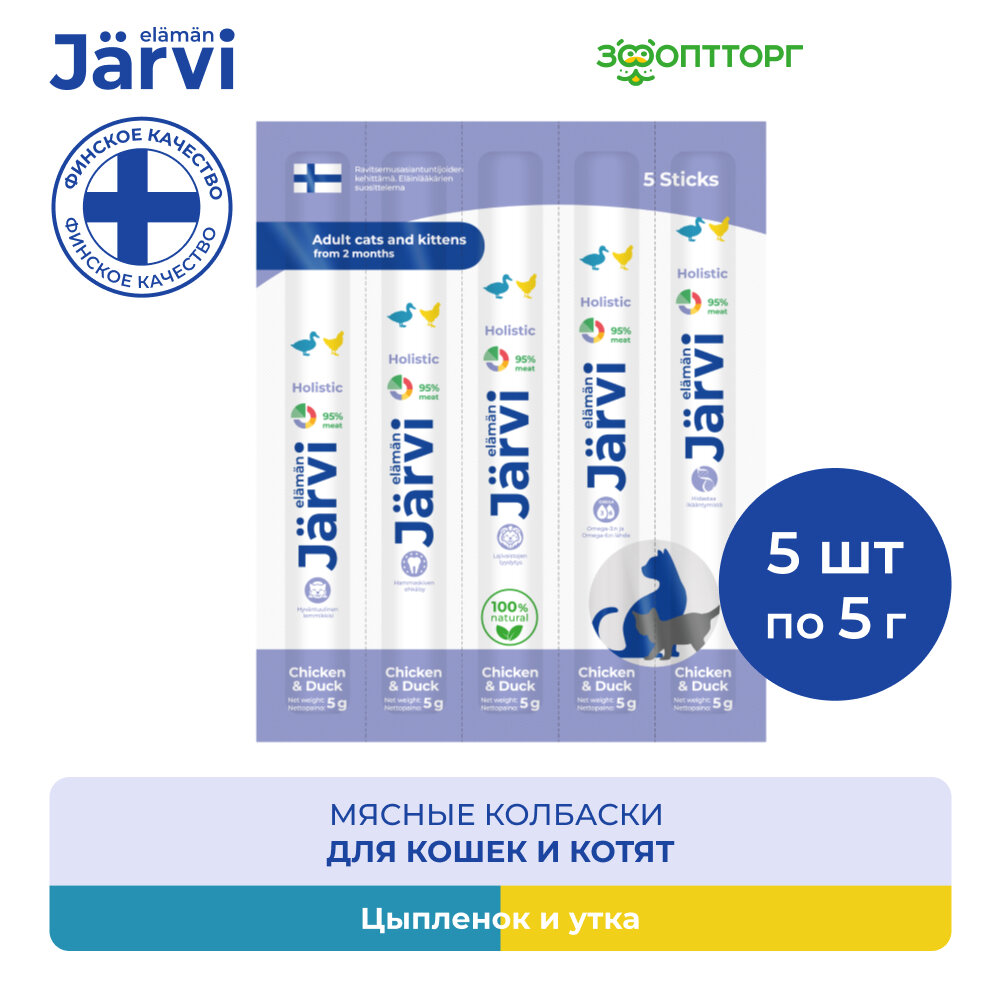 Jarvi мясные колбаски для котят и кошек с цыпленком и уткой 5 упаковки по 1 шт. информация:
