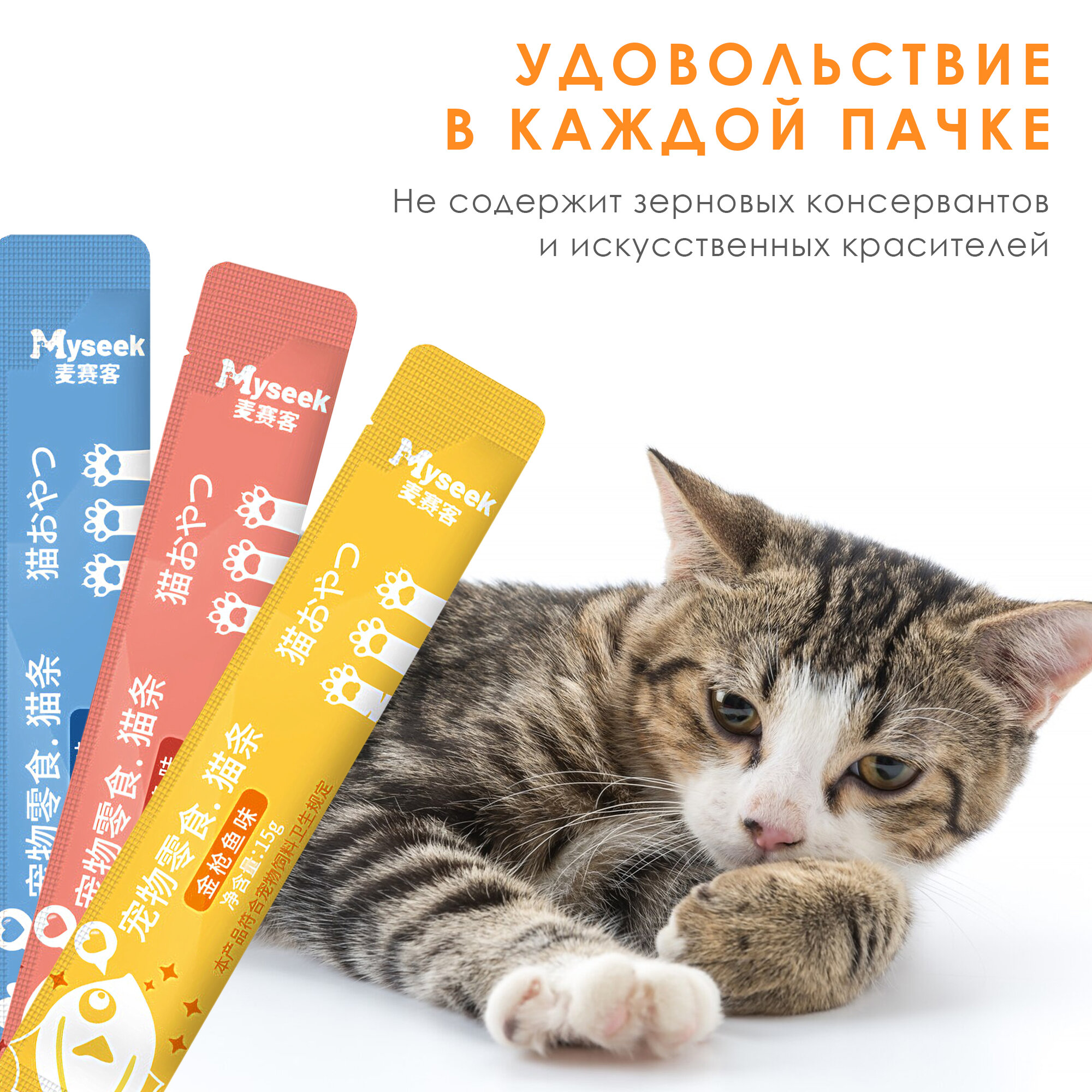 Отзывы на "Myseek лакомство для кошек "нежное пюре" с морским гребешком и курицей 10 шт х 15 г.