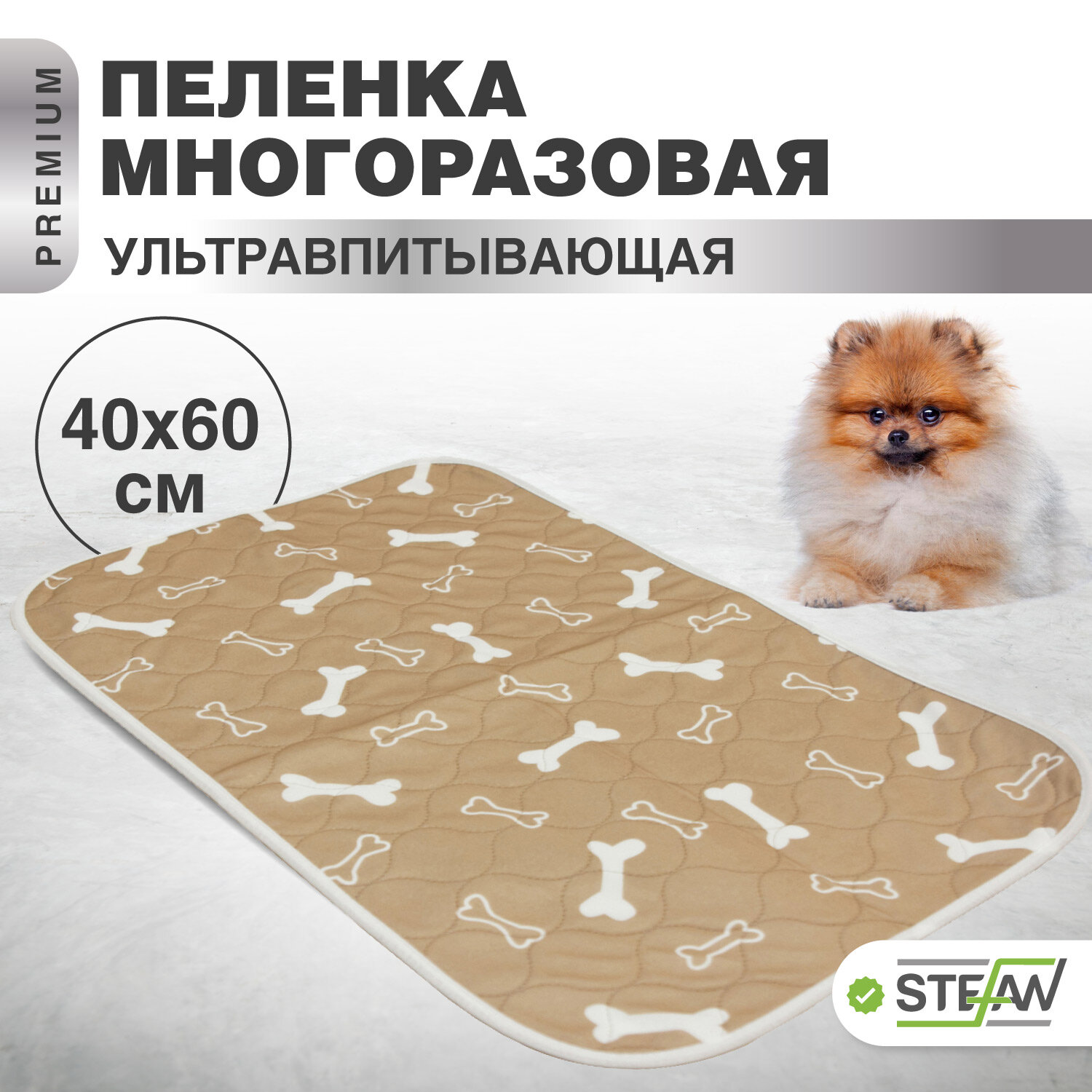 Отзывы на Многоразовая пеленка для собак STEFAN (Штефан), премиум, коврик, подстилка для животных, коричневый, 40х60см, PT40603