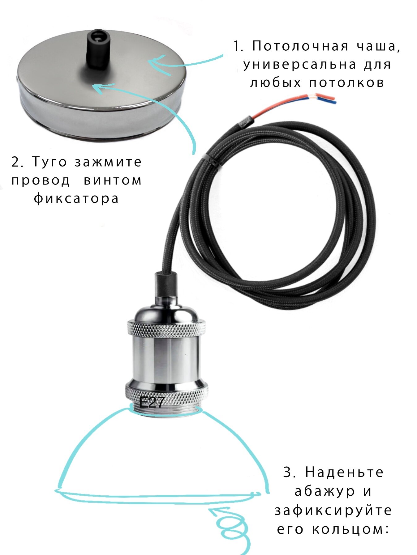 Шнур подвес Loft с патроном Е27 хром информация: