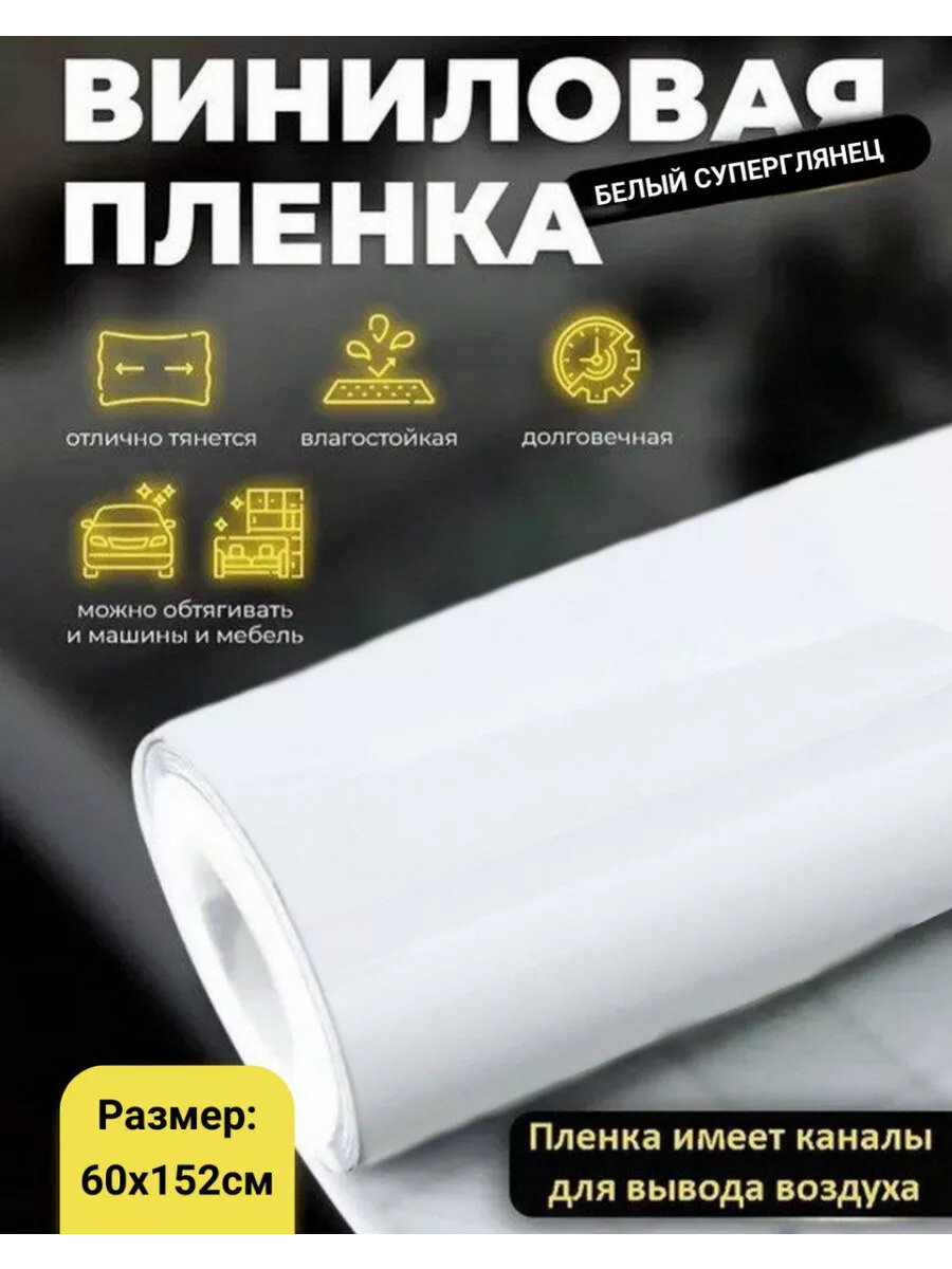 Виниловая пленка белый глянец 60х152см для мебели и авто / самоклеящаяся белая глянцевая пленка автовинил информация:
