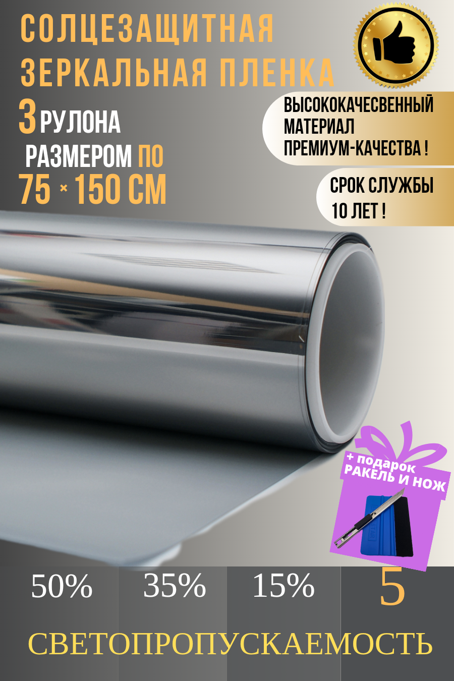 10 цен на Зеркальная пленка для окон,5% серебро 75х150см 3 рулона