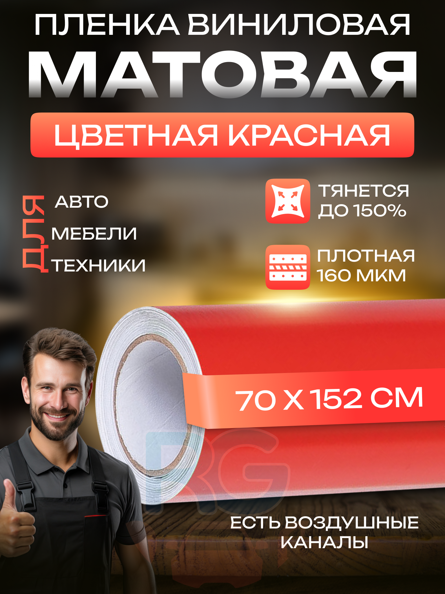 Защитная пленка для автомобиля матовая. Авто тюнинг аксессуар в салон: 90х152 см, цвет: красный 787 ₽