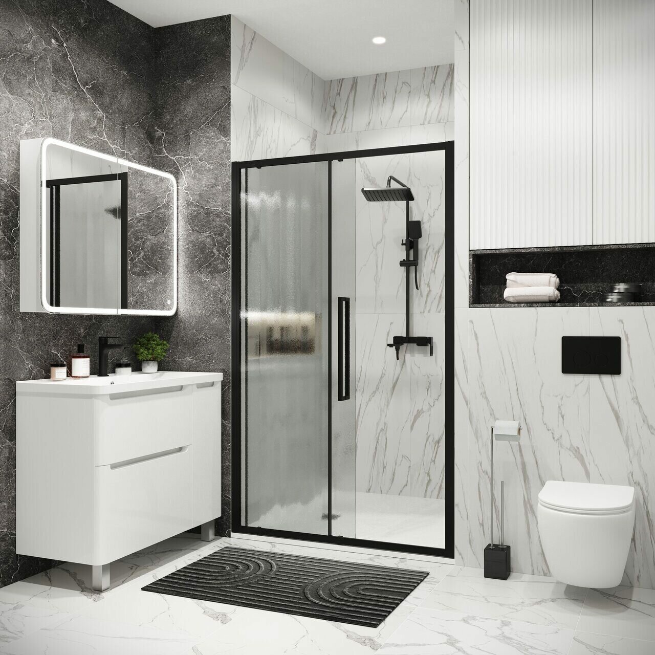Дверь в нишу Grossman Cosmo 100.K33.02.130.21.02 130х195 см черный матовый стекло шиншилла информация: