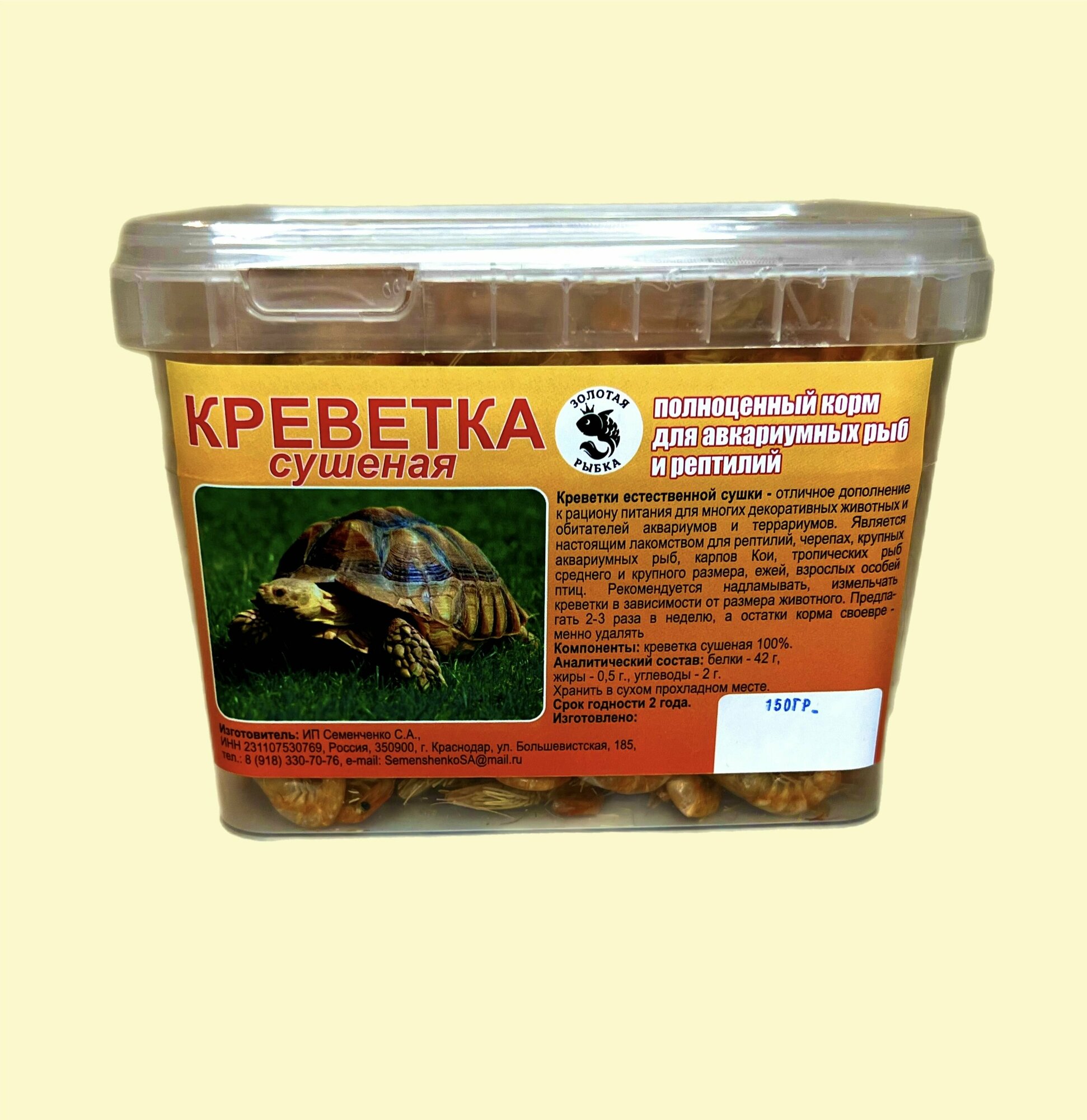 Корм для аквариумных и прудовых рыб, рептилий Золотая рыбка. Креветка сушеная 150гр. Пл.контейнер 1л. информация: