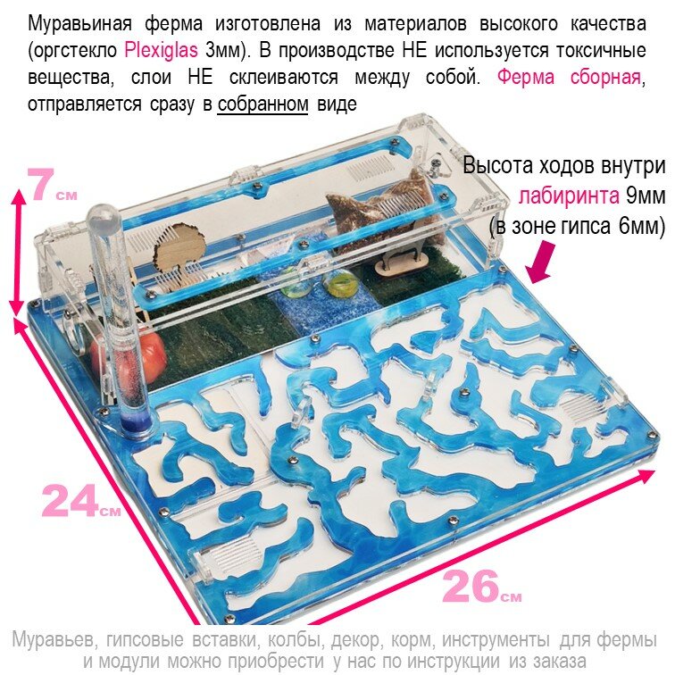 | Дополнительная информация | Муравьи в комплект НЕ входят, но их можно приобрести у нас по инструкции из заказа |