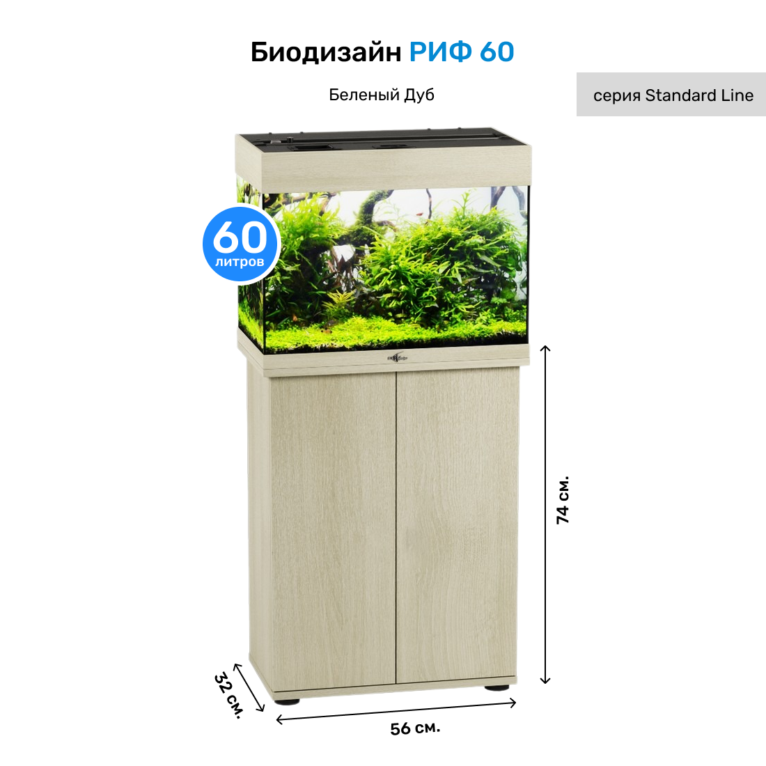 Тумба, подставка для аквариума РИФ 60 (белёный дуб) 56*32*73 см информация: