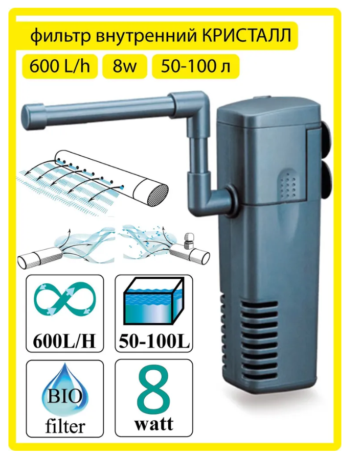 Внутренний фильтр BARBUS FILTER 023 Кристал 600 л/ч 8 Вт (1 шт) информация: