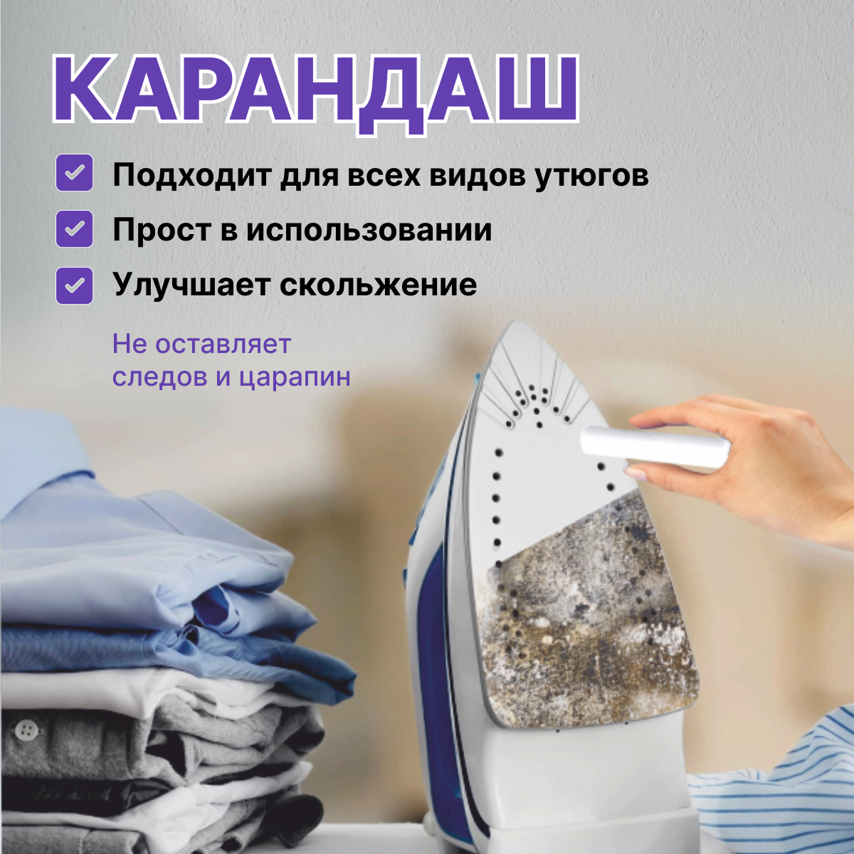 Отзывы на Насадка/накладка для утюга универсальная, термостойкая, карандаш для чистки утюга