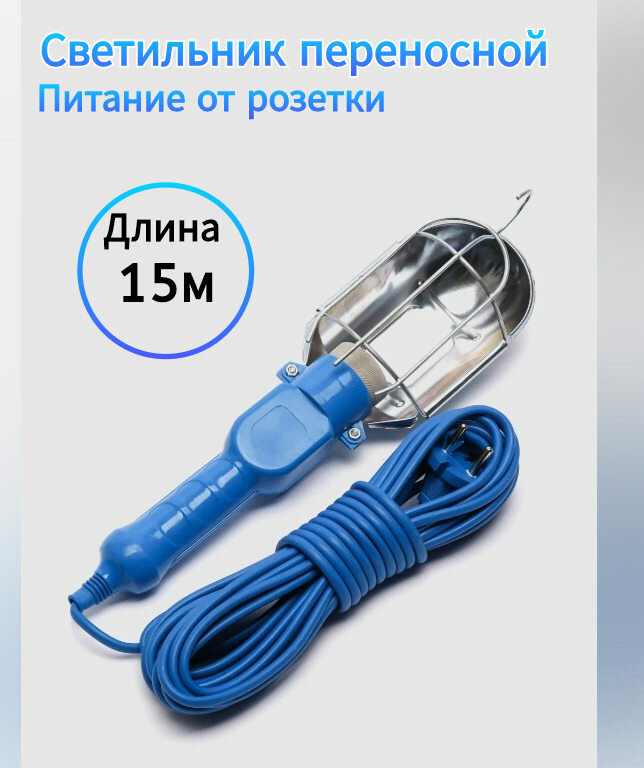 Светильник-переноска 15 м с выключателем, От сети 220В информация: