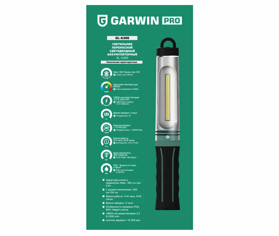 GARWIN PRO GL-A300 Светильник переносной светодиодный аккумуляторный GL-A300 информация: