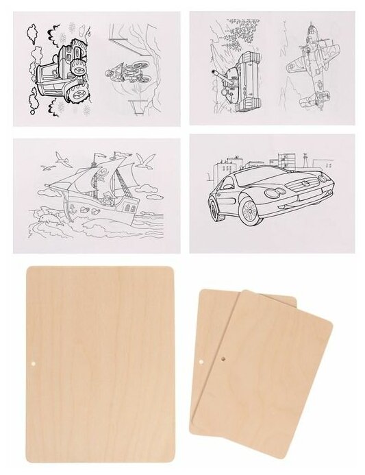 4шт Заготовки деревянные для выжигания "Сказочные мотивы",