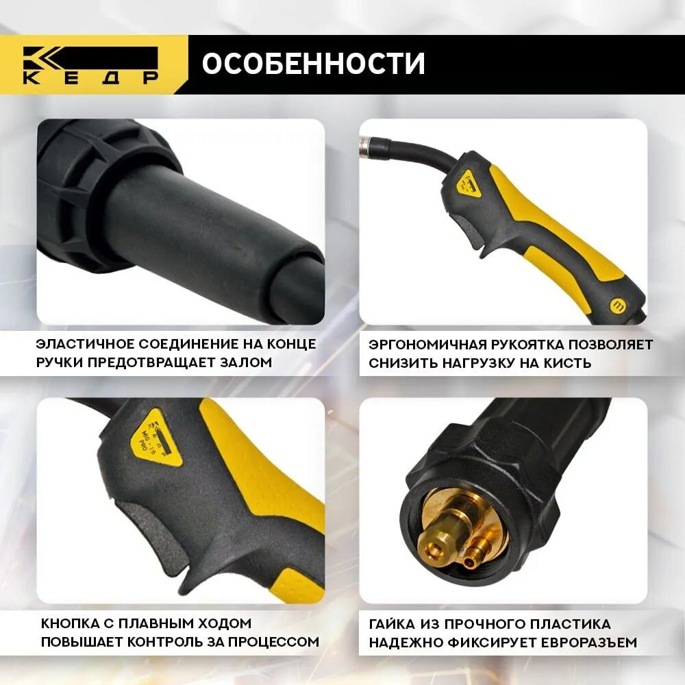 10 цен на Горелка сварочная для полуавтомата MIG MAG кедр MIG-15 PRO (евро адаптер) 4м 7150003