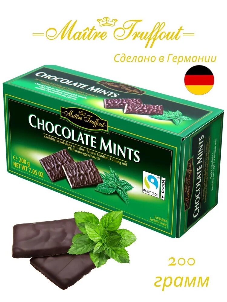 Темный шоколад с мятной начинкой в пластинках Maitre Truffout (Германия) 200 гр. х 3 шт. 1 973 ₽