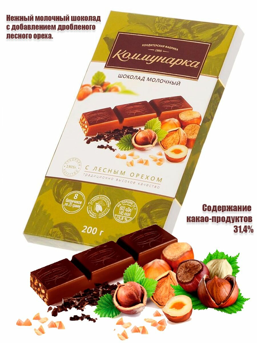 Шоколад молочный с лесным орехом Коммунарка 2 шт х 200гр информация: