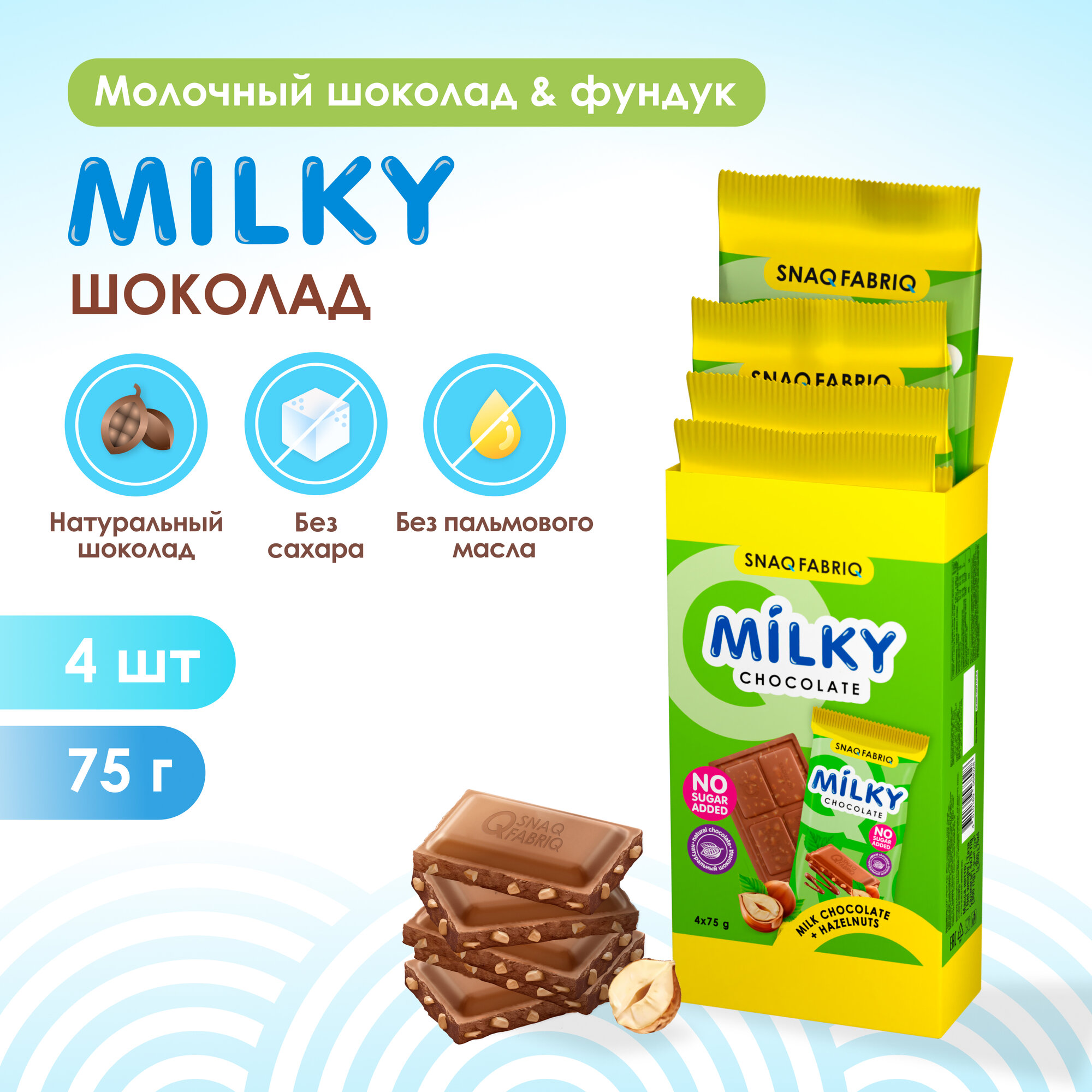 10 цен на Snaq Fabriq Молочный шоколад без сахара MILKY с фундуком, 75г х 4шт