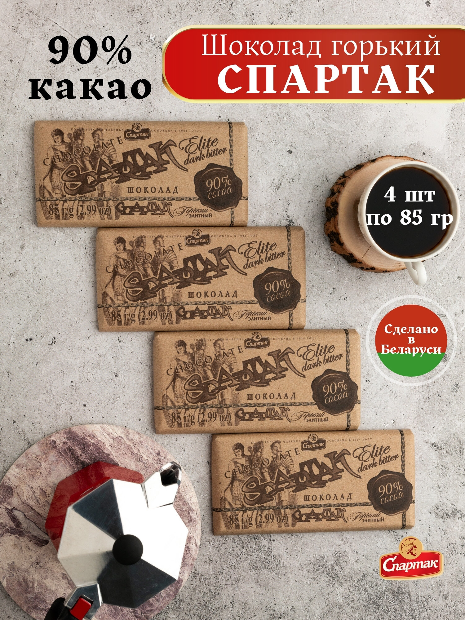 Шоколад горький элитный 90 % крафт ,4 шт по 85 гр, спартак информация: