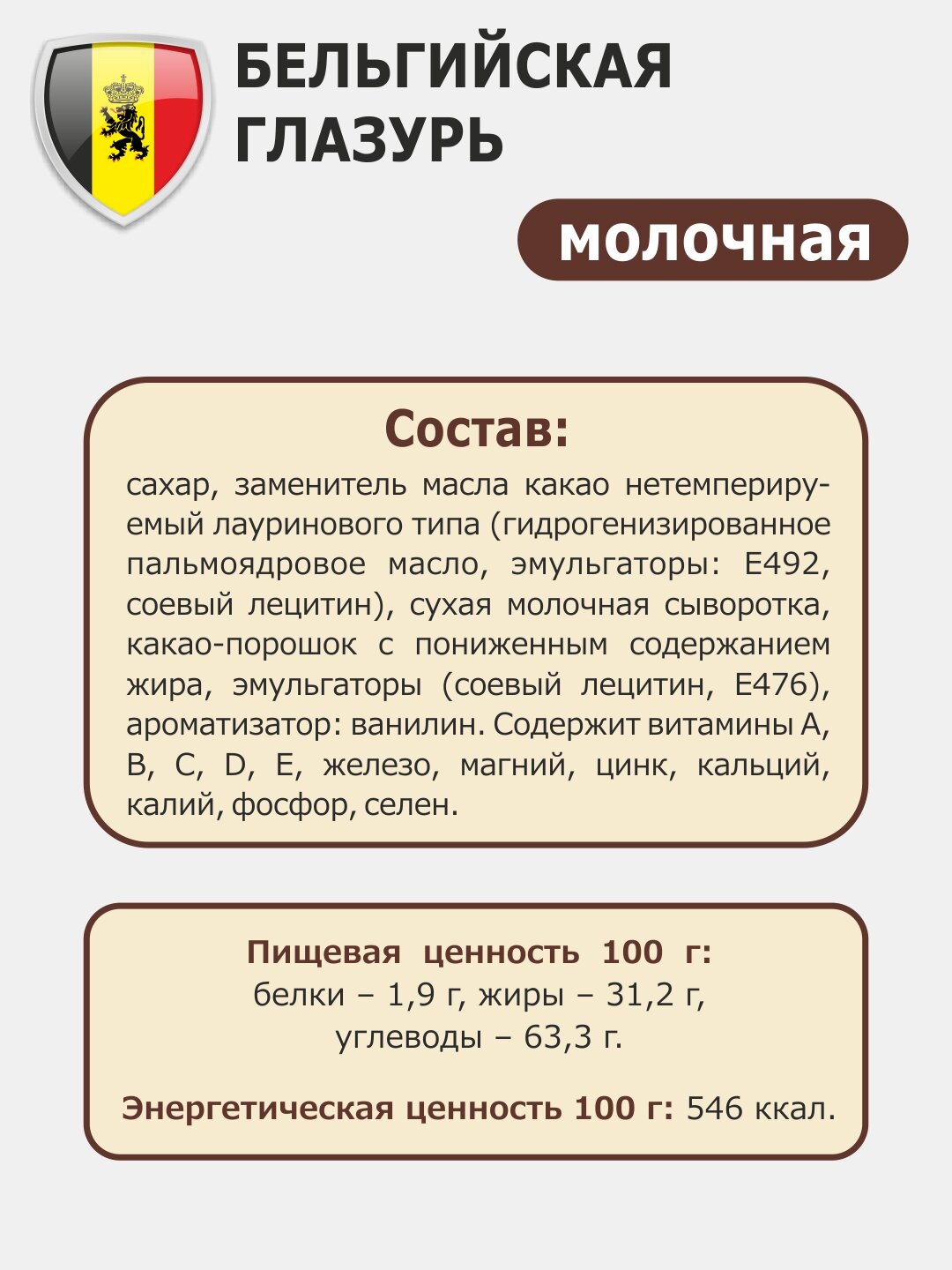 Глазурь молочный шоколад кондитерская бельгийская 1,0 кг информация: