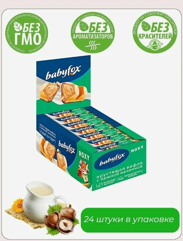 «BabyFox», вафельный батончик Roxy Молоко/фундук 24 шт. информация: