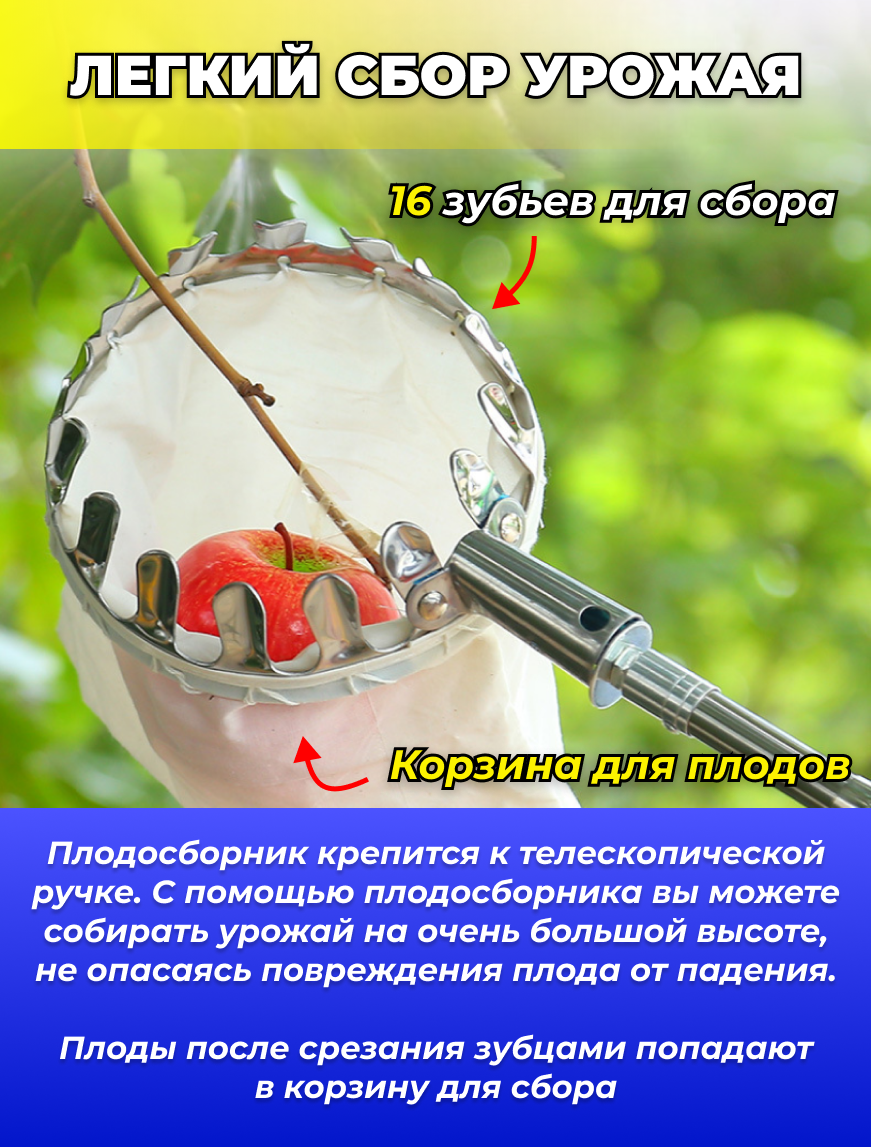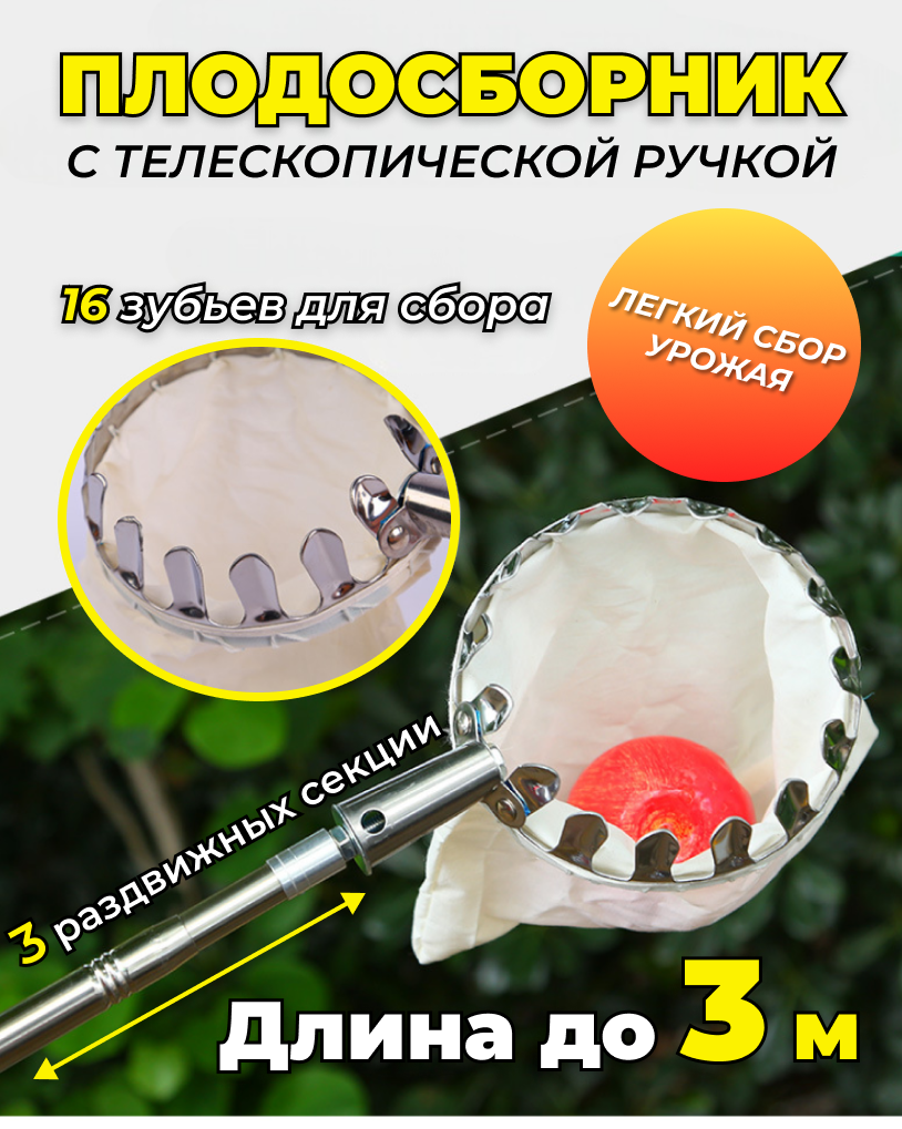 Плодосборник с телескопической ручкой, длина до 3 метров информация: