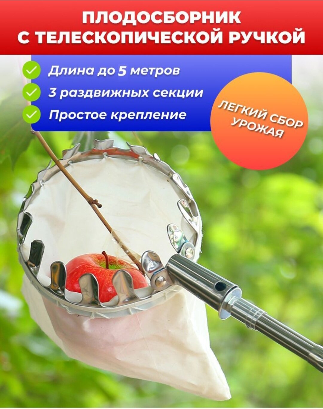 Плодосборник с телескопической ручкой, длина до 5 метров информация: