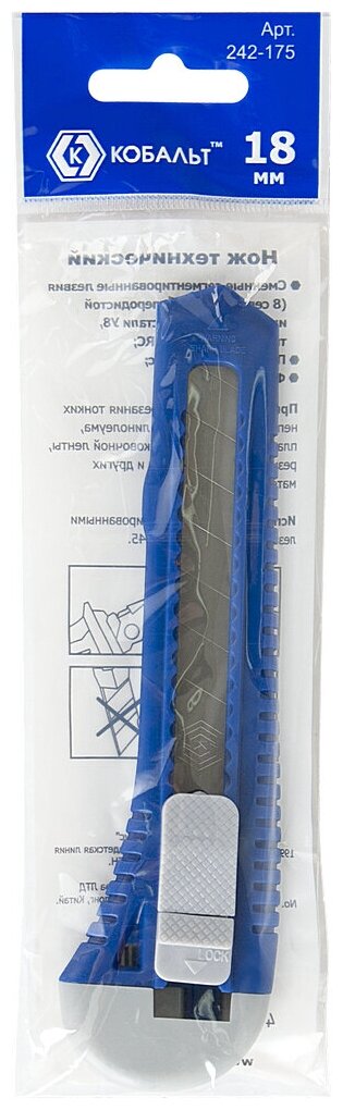 Нож технический кобальт лезвие 18 мм, пластиковый корпус, пакет информация: