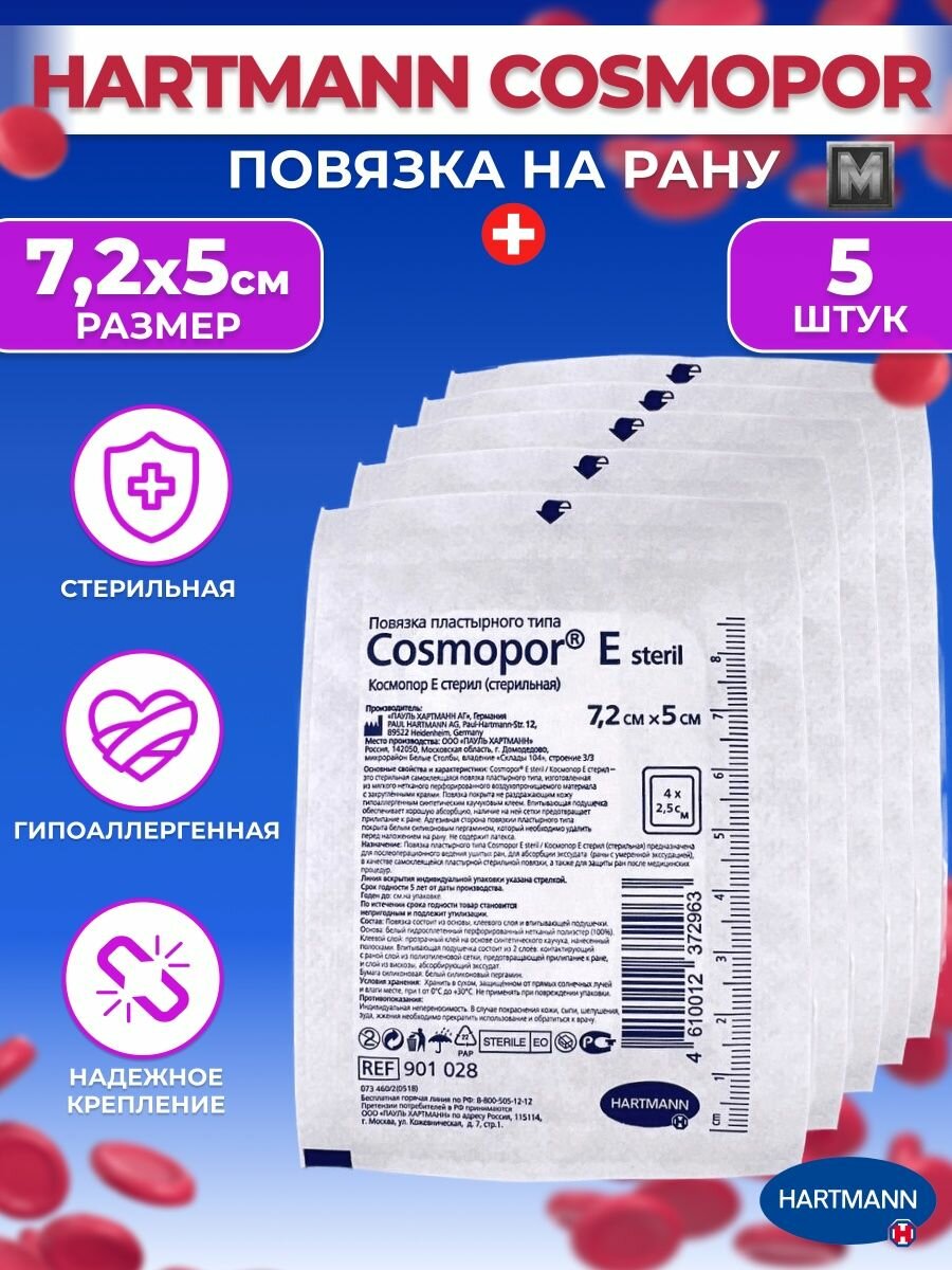 Пластыри на рану Cosmopor E повязки ранозаживляющие 7,2х5см 5 шт информация: