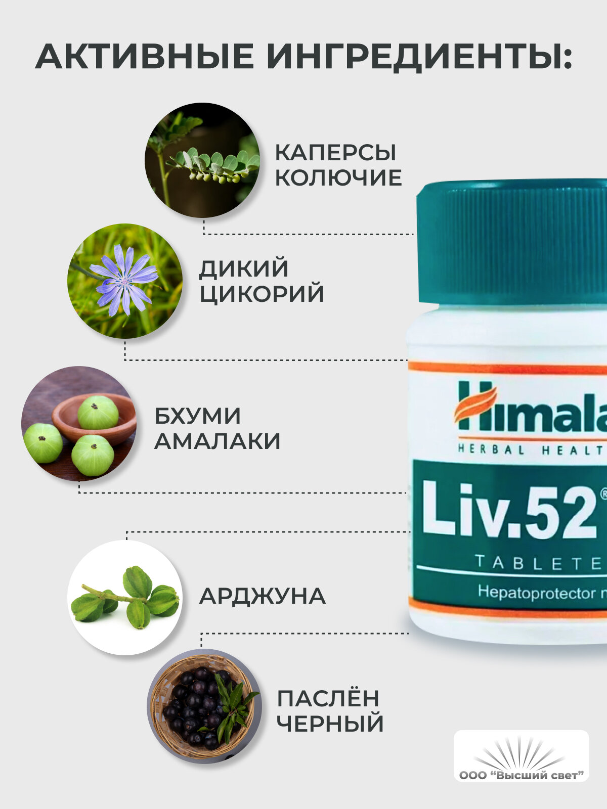 Таблетки Лив 52 ДС Хималая (Liv.52 DS Himalaya) для лечения печени, для нормализации работы пищеварительной системы, 2х60 таб. информация: