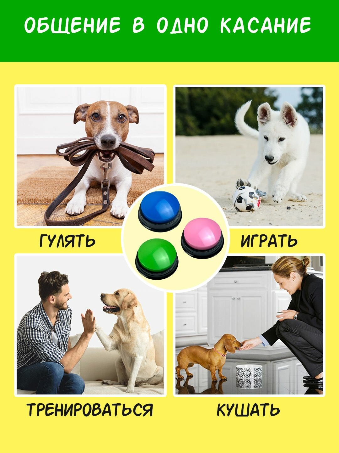 Отзывы на Кнопка для дрессировки животных с записью голоса / кликер для собак и кошек, дрессировка питомец / зеленая