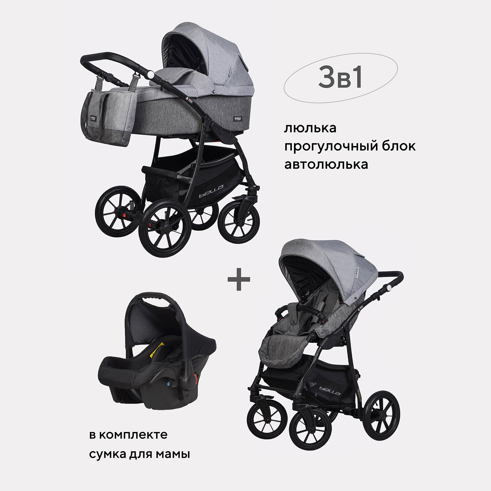 10 цен на Коляска BELLA (3 в 1) (RIKO BASIC) 01 серый-графит