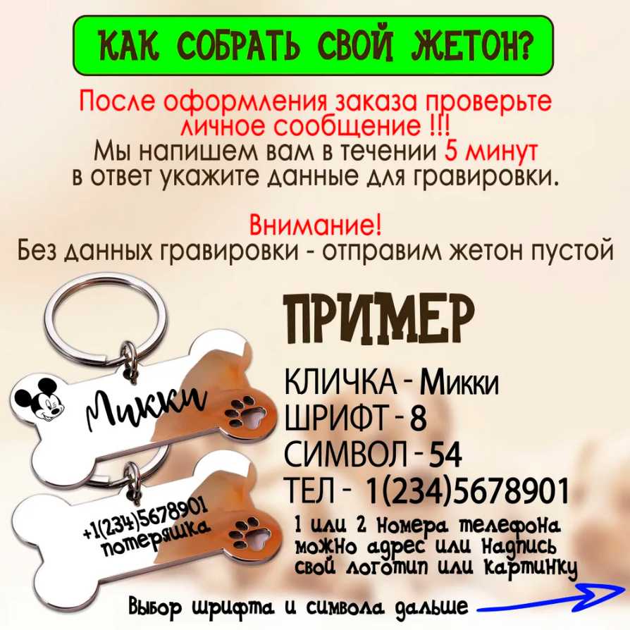 Адресник для собак и кошек с гравировкой, брелок на ключи, именной жетон, размер 40х21mm Серебро. Зеркальный (нержавеющая сталь) v2.0 780 ₽
