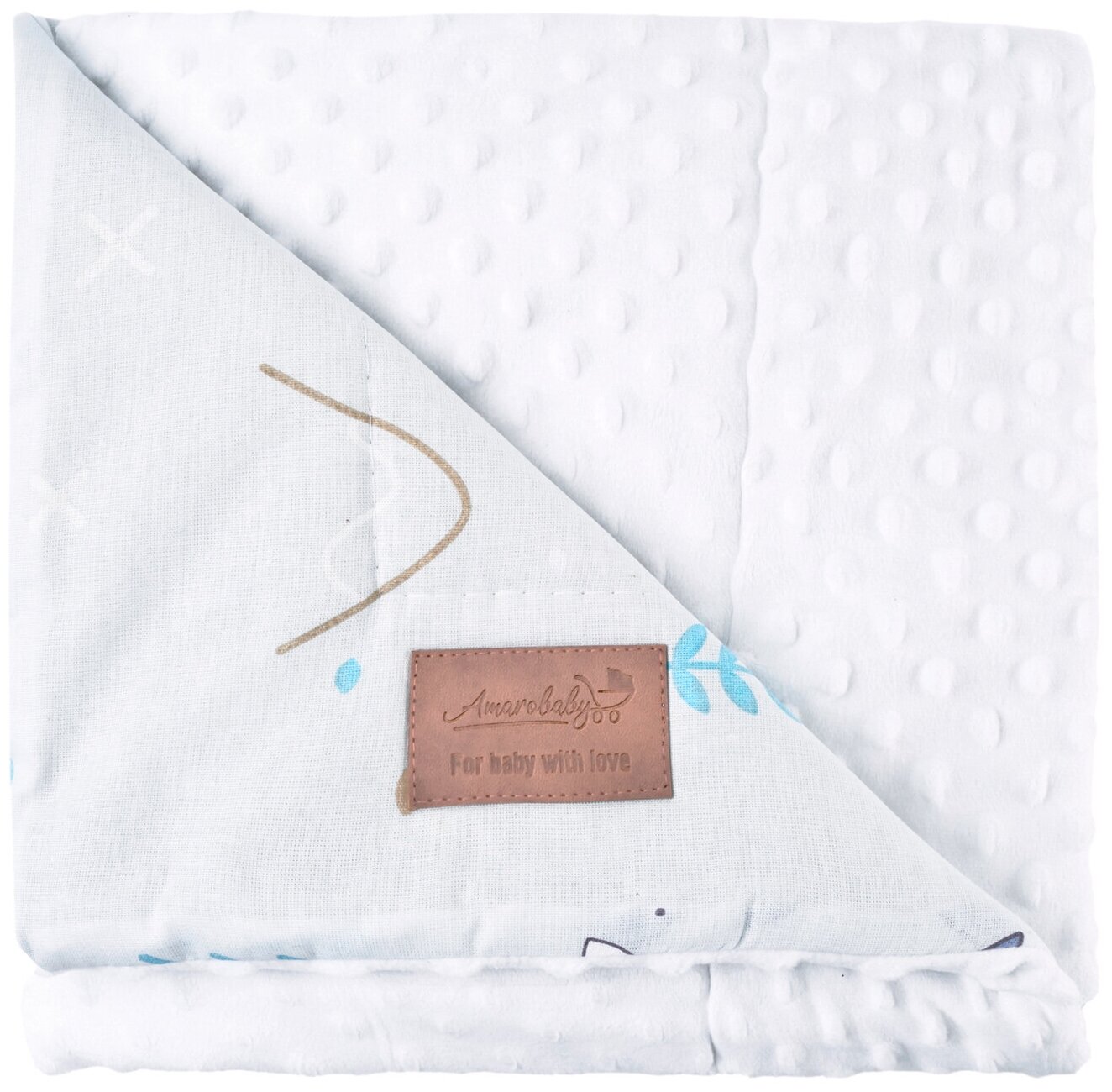 Плед AmaroBaby растем вместе 95х85 хлопок/minky DINO, белый/голубой