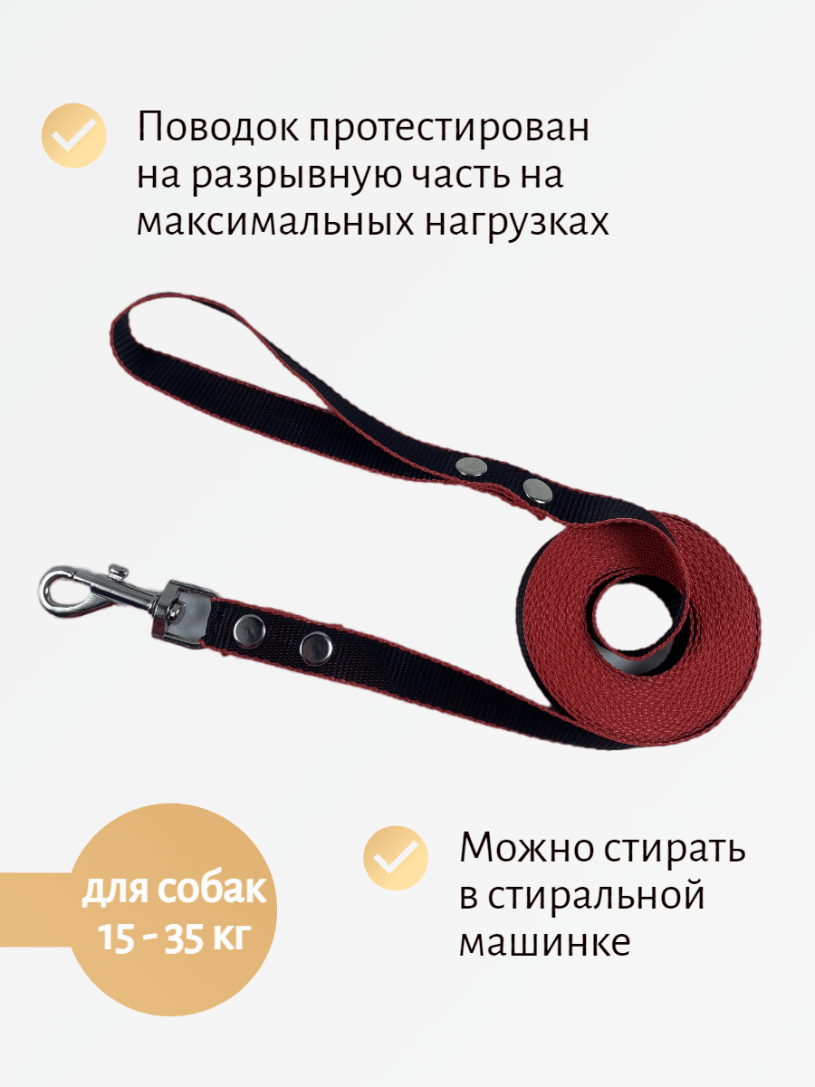 Отзывы на Поводок Хвостатыч для собак нейлоновый классический 5 м х 20 мм (Черно-красный)
