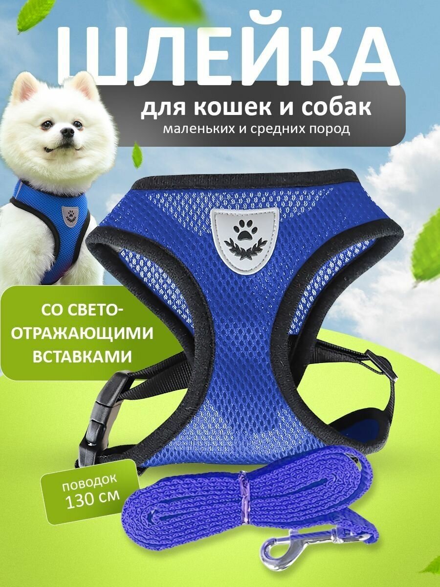 Шлейка для кошек и собак с поводком 130 см со светоотражающими элементами информация: