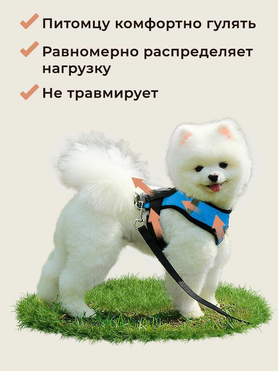 Отзывы на Шлейка MiloPets для собак и кошек анатомическая, с поводком 120 см, обхват груди M 35-48 см, голубой