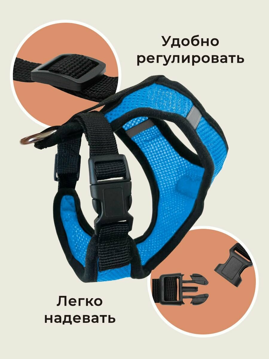 Шлейка MiloPets для собак и кошек анатомическая, с поводком 120 см, обхват груди M 35-48 см, голубой информация: