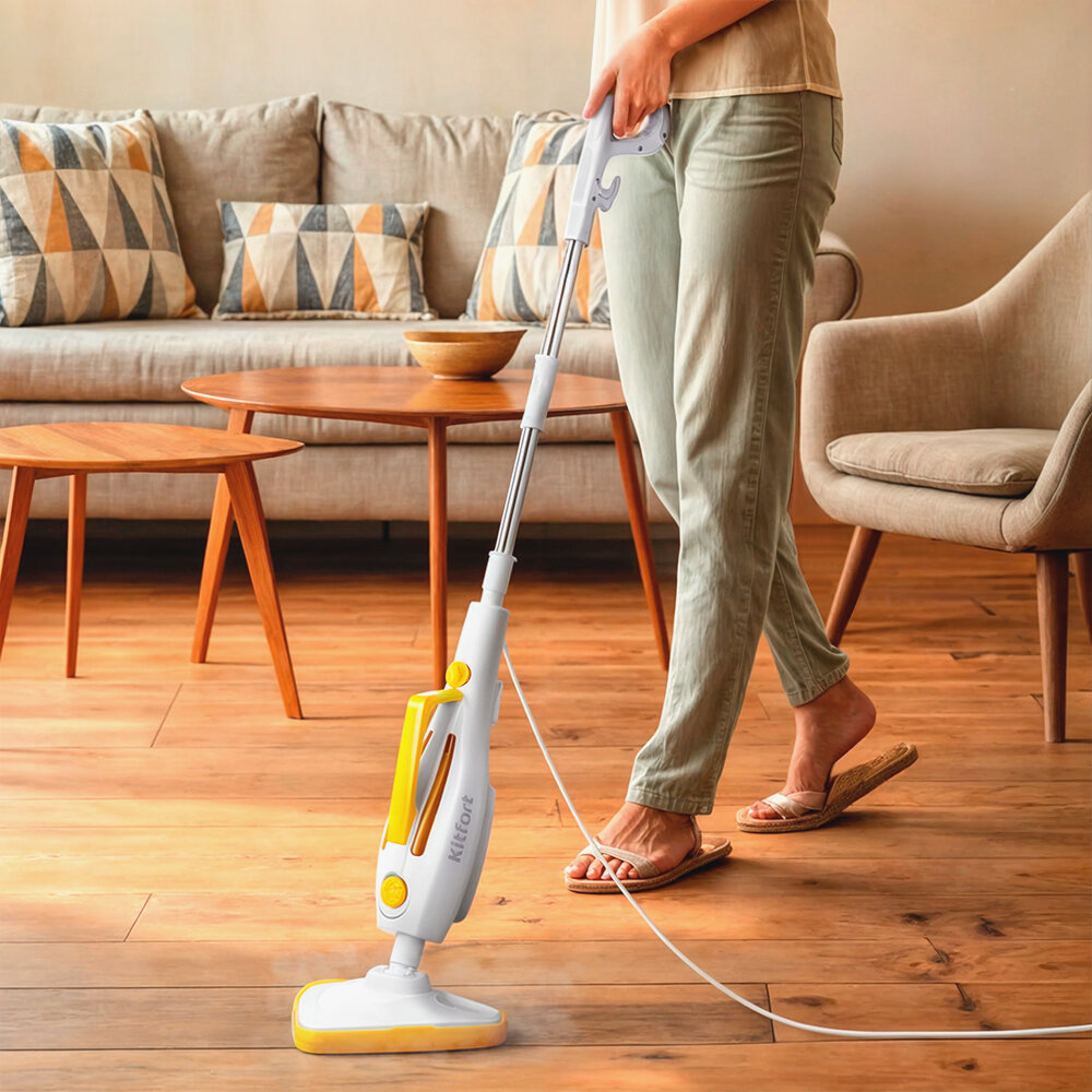 Паровая швабра Windigo WSM-01, 1300 Вт, 350 мл, время нагрева 25 сек, шнур 4 м, бело-голубой